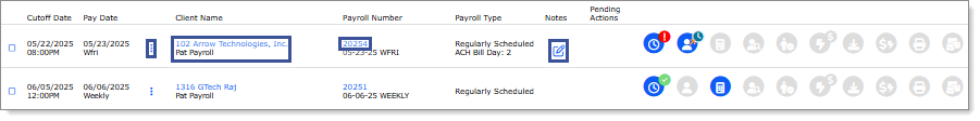 Access additional actions for selected client or payroll |